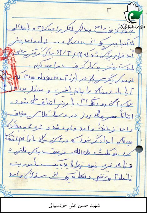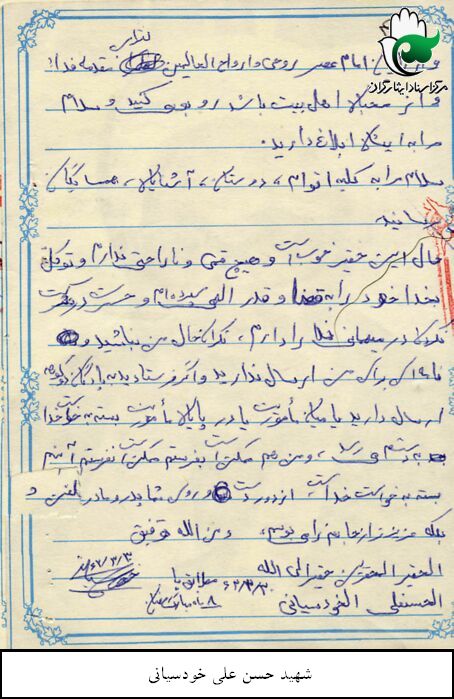 که حتی الان هم مادر و خواهر علی اکبر می گویند که حسنعلی برادر علی اکبر بود که بعد از او راه افتاد و رفت. من هر چه بگویم می گویند مادر است و دارد تعریف می کند اما حسنعلی من یک چیز دیگر بود خود شهید نیک بین و معلم دبیرستانش(هنرستان) نوشته بود به قول علی علیه السلام: “آدم کسی را که از دست داده تازه می فهمد.”بنیاد همه را برد . این کپی وصیتنامه شهید است.